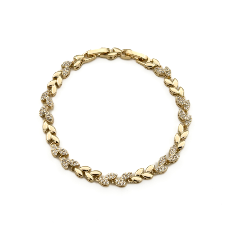 CM Gold Renk Taşlı Yaprak Desenli Bileklik