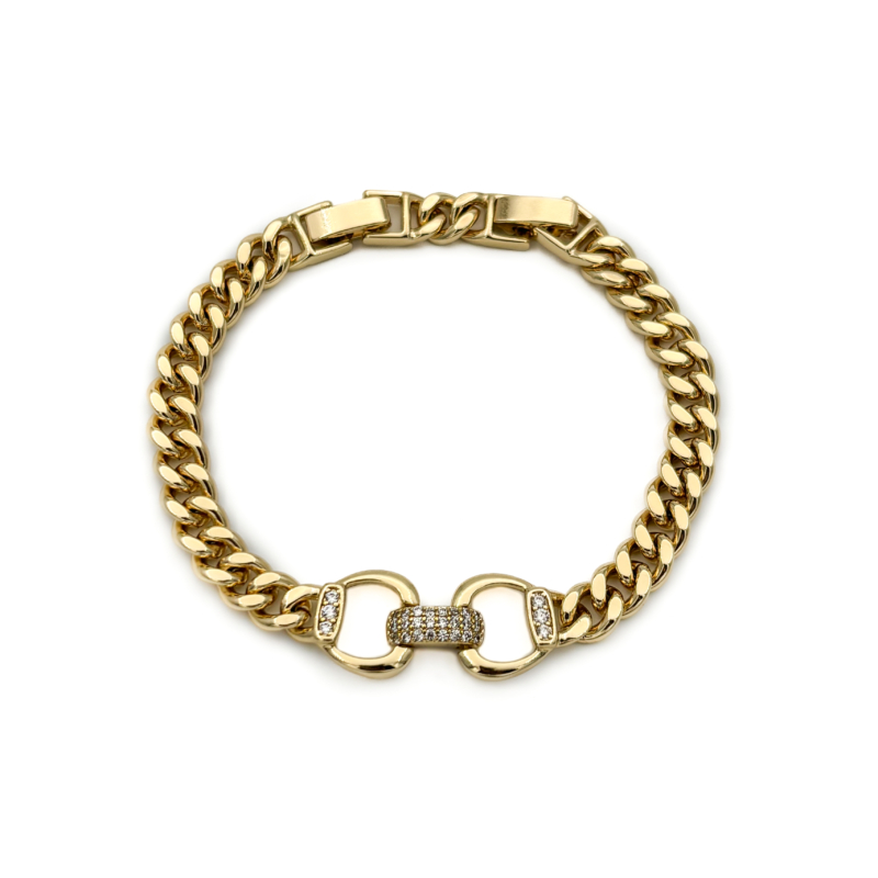 CM Gold Renk Taşlı Chevron Desenli Kalp Bileklik