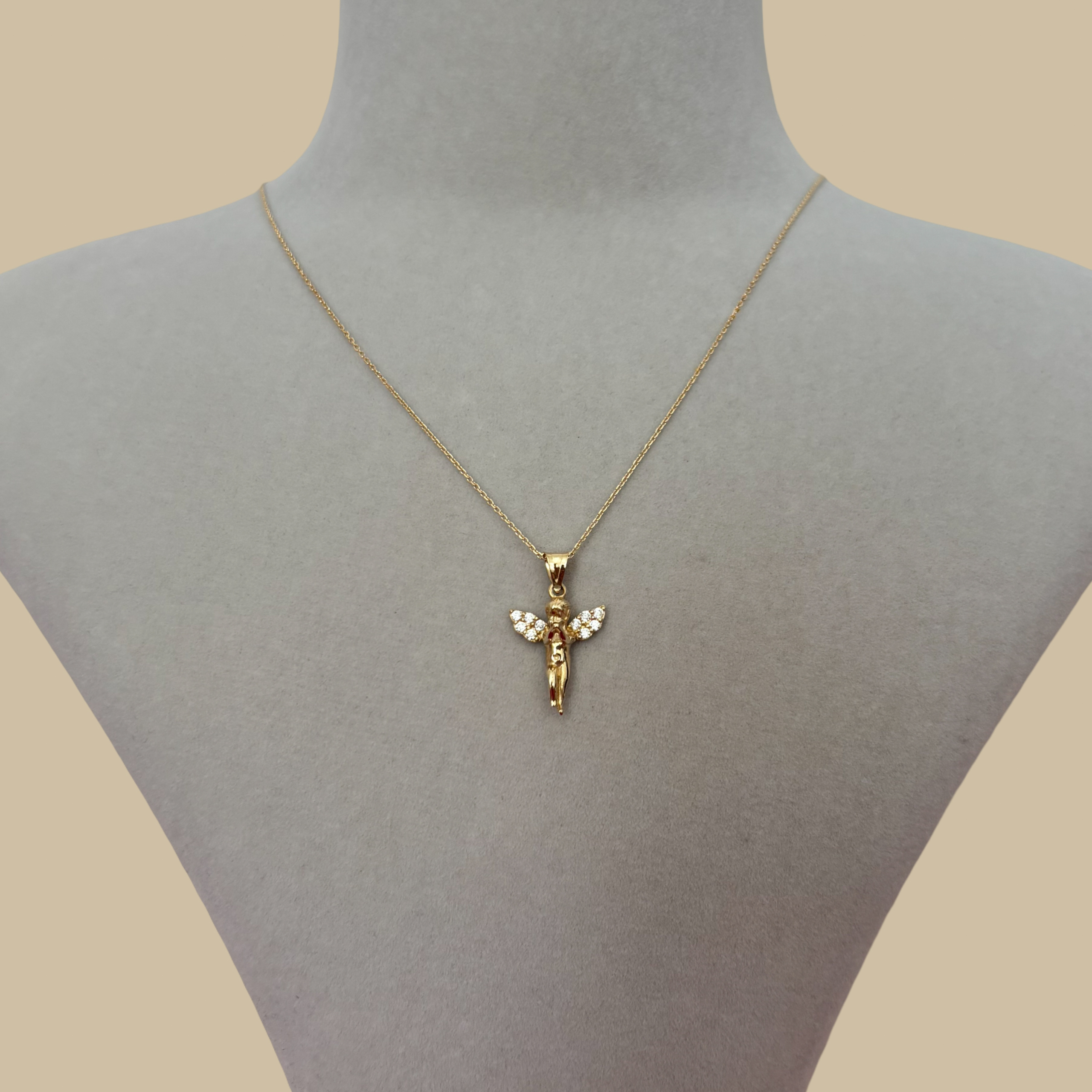 Altının kalıcı değerini derin bir anlamla buluşturan bu Altın Taşlı Melek Kolye, ister kendinize isterseniz de sevdiklerinize anlamlı bir hediye alternatifi sunar.