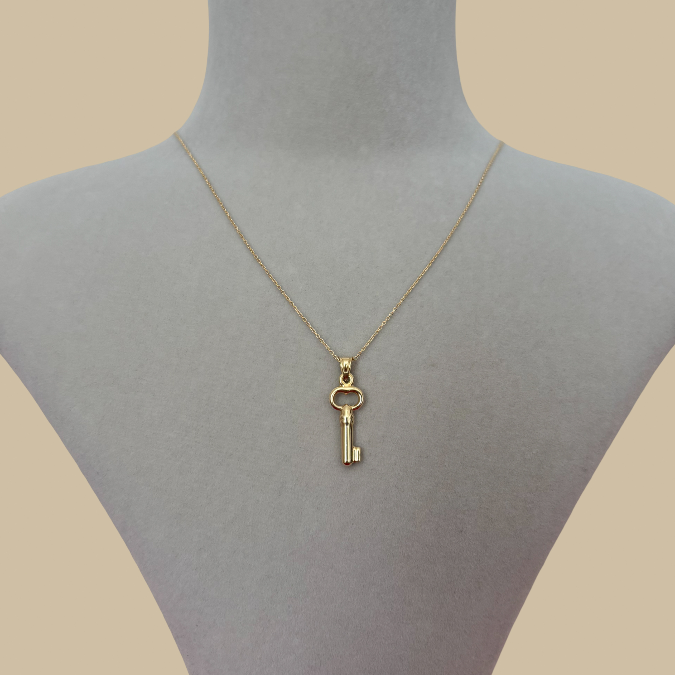 14 ayar saf altından özel işçilikle üretilmiş Altın Vintage Anahtar Kolye, incelik ve sadelik temalı tasarımıyla ruhunuza enerji katar. Zarif çizgileri ve modern dokusuyla hem günlük hayatta hem de özel günlerde şıklığınızı tamamlar.