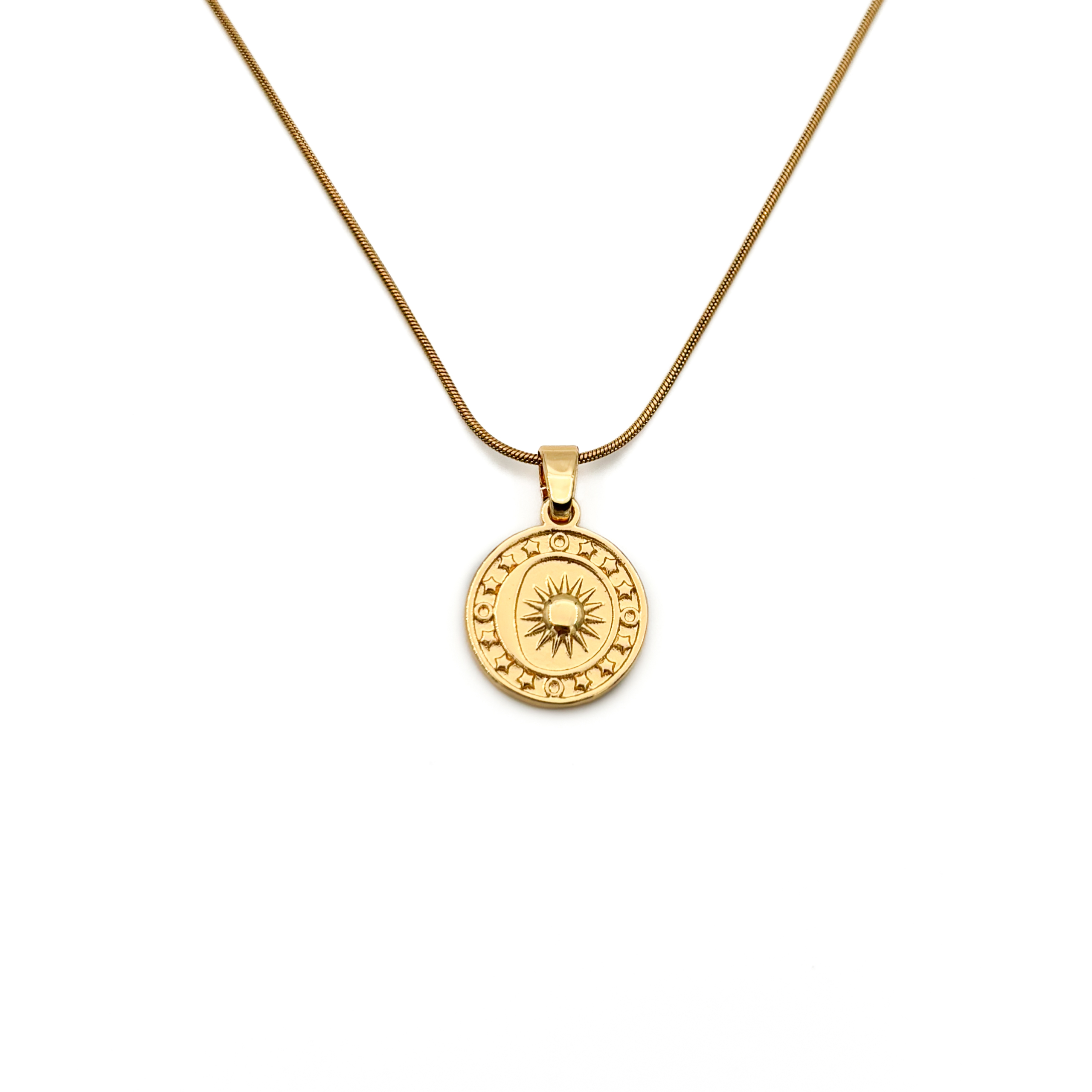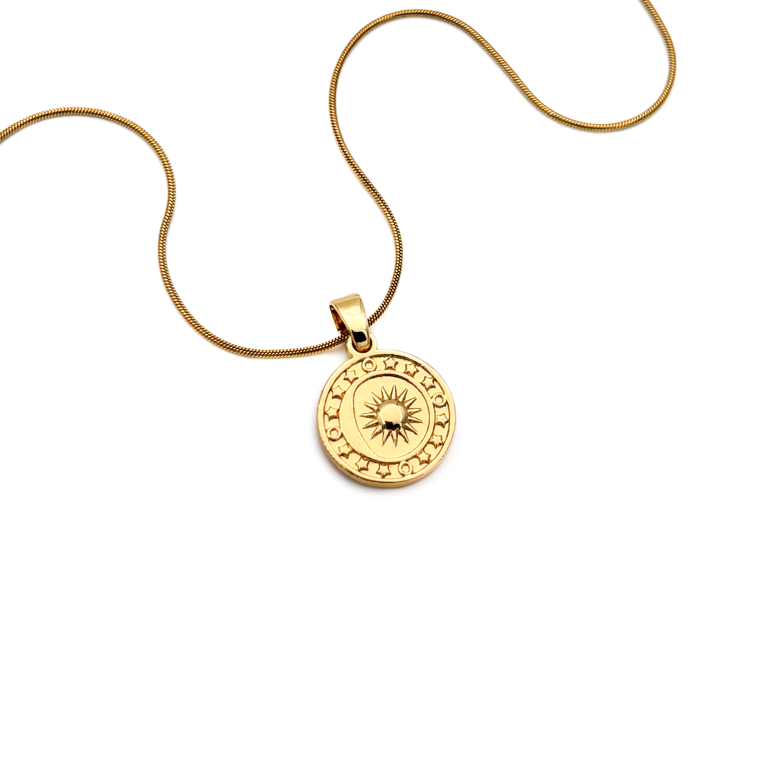 Çelik Gold Renk Güneş Figürlü Yuvarlak Madalyon Kolye