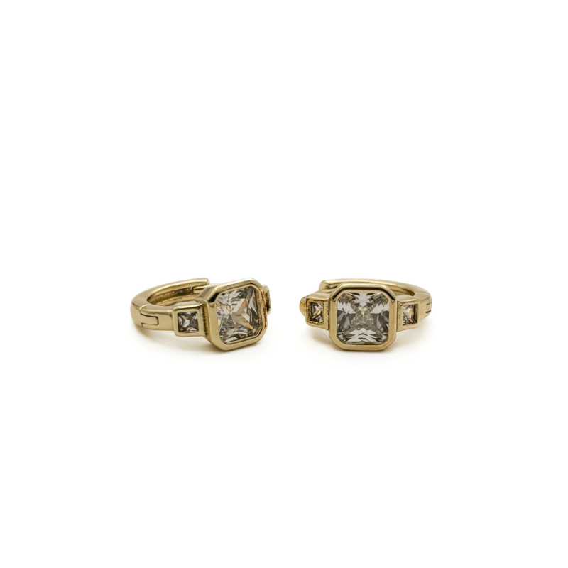 Xuping Gold Renk Kare Üç Taşlı Küpe