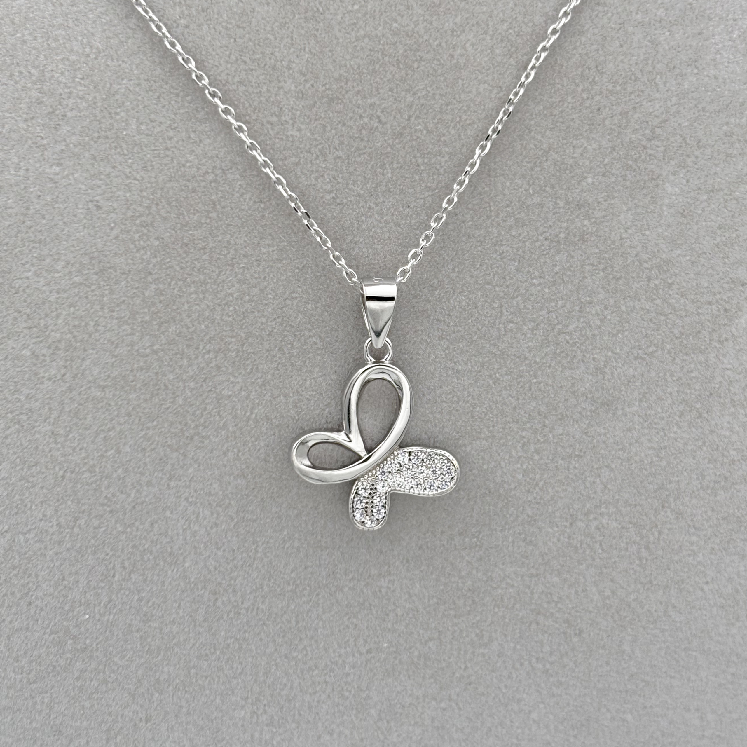 Zirkon Taşlı Çerçeve Kanat Kelebek Figür Kolye