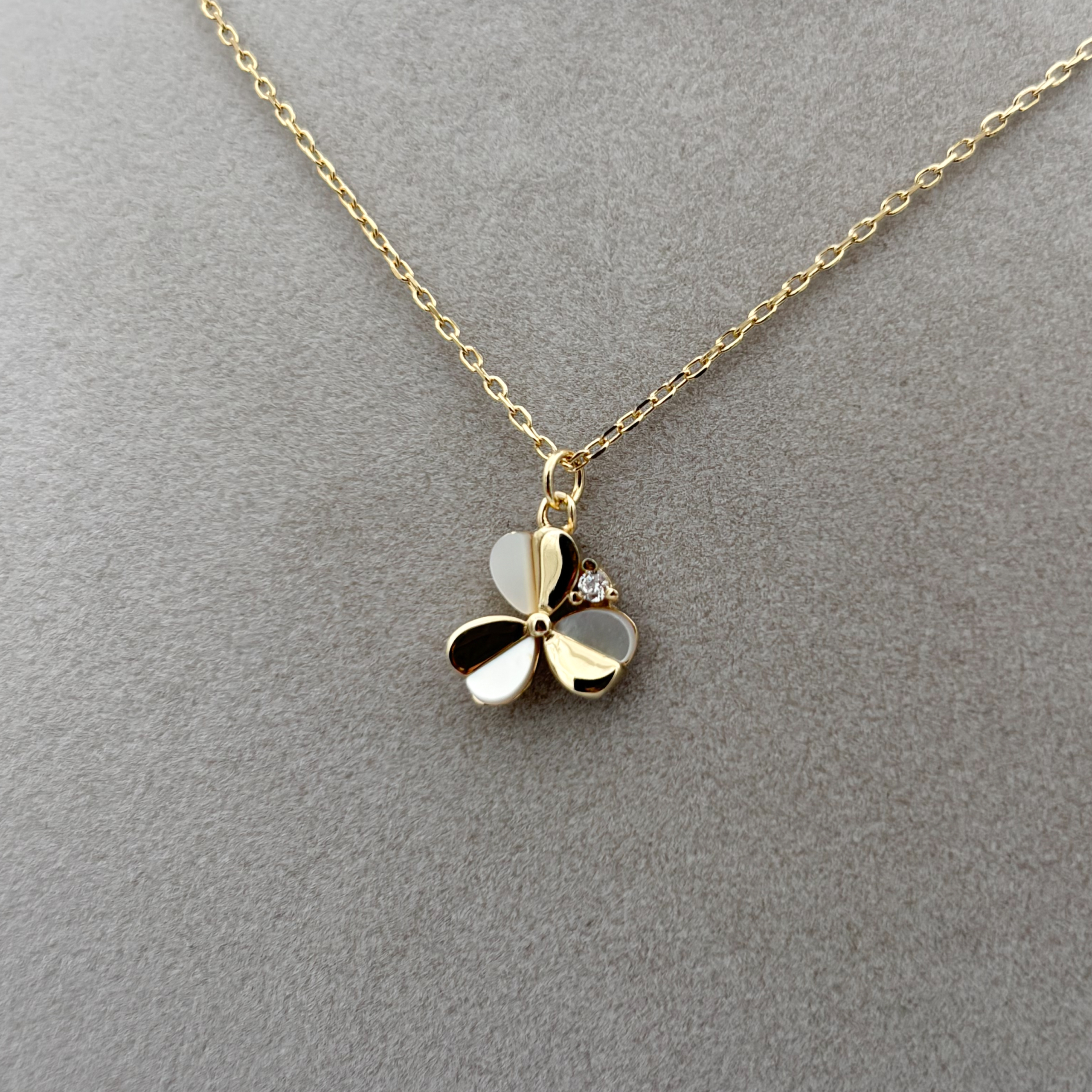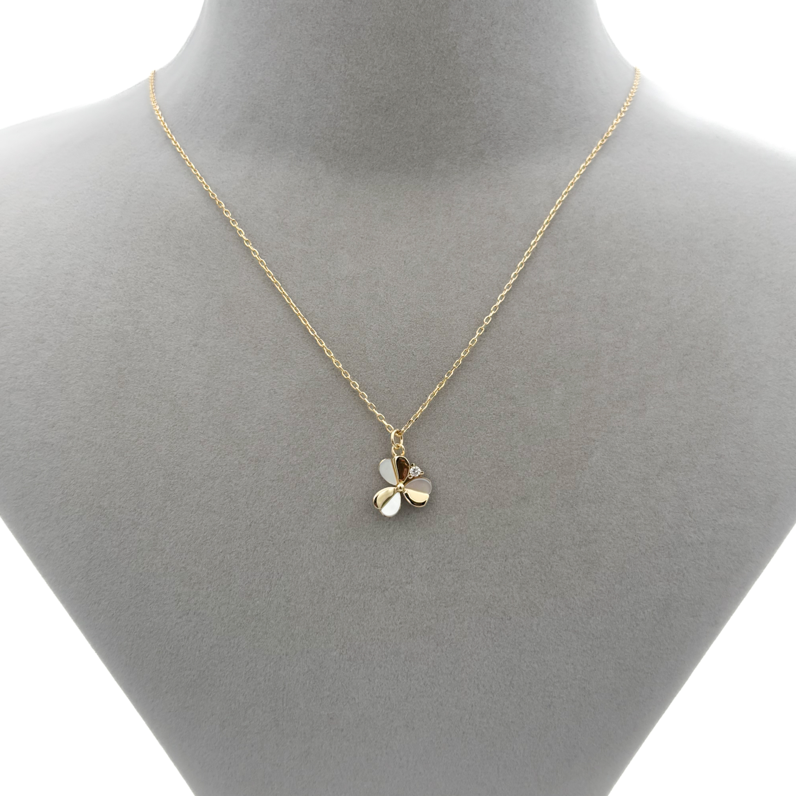 Zirkon Taşlı ve Sedefli Gold Renk Yonca Kolye