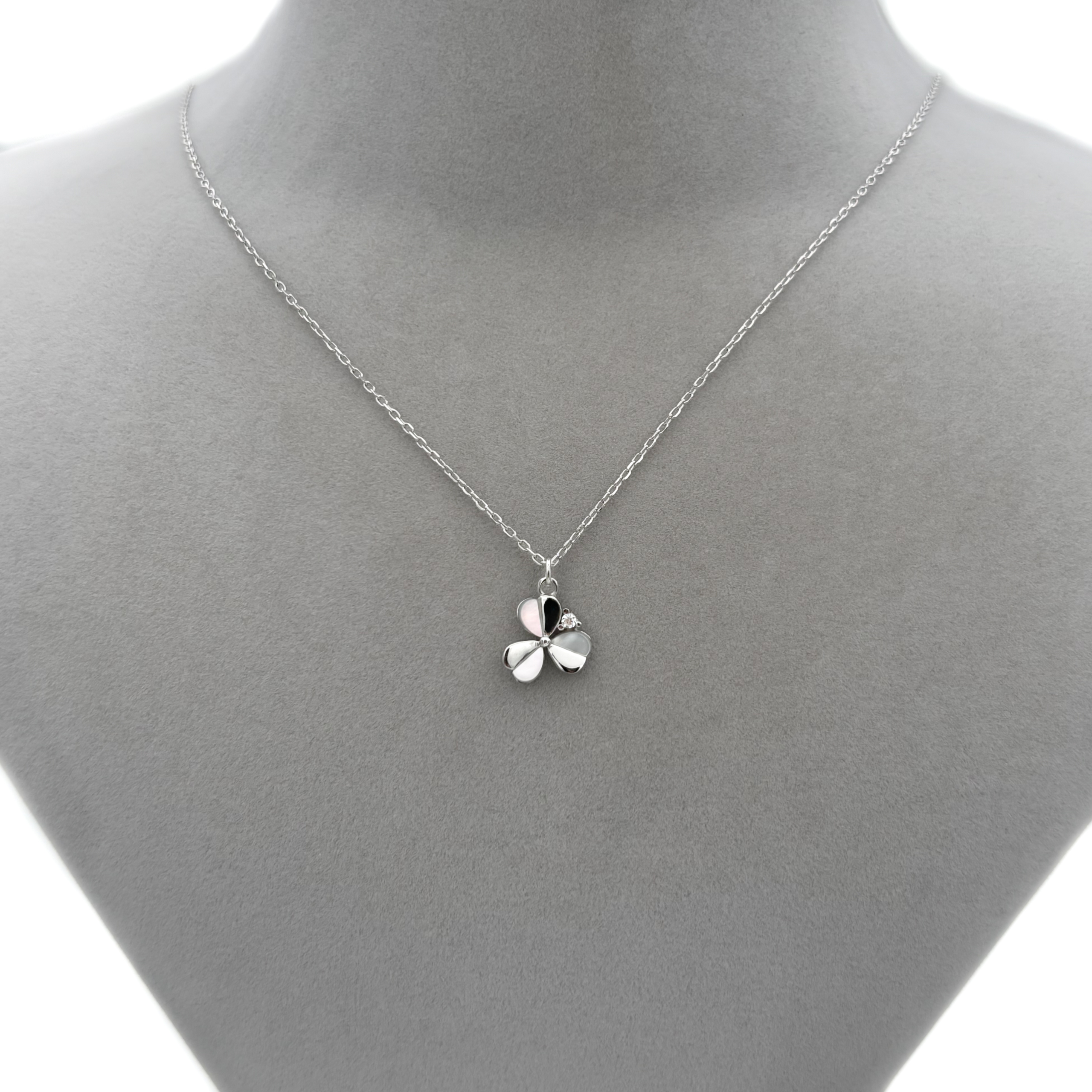 Zirkon Taşlı ve Sedefli Yonca Kolye