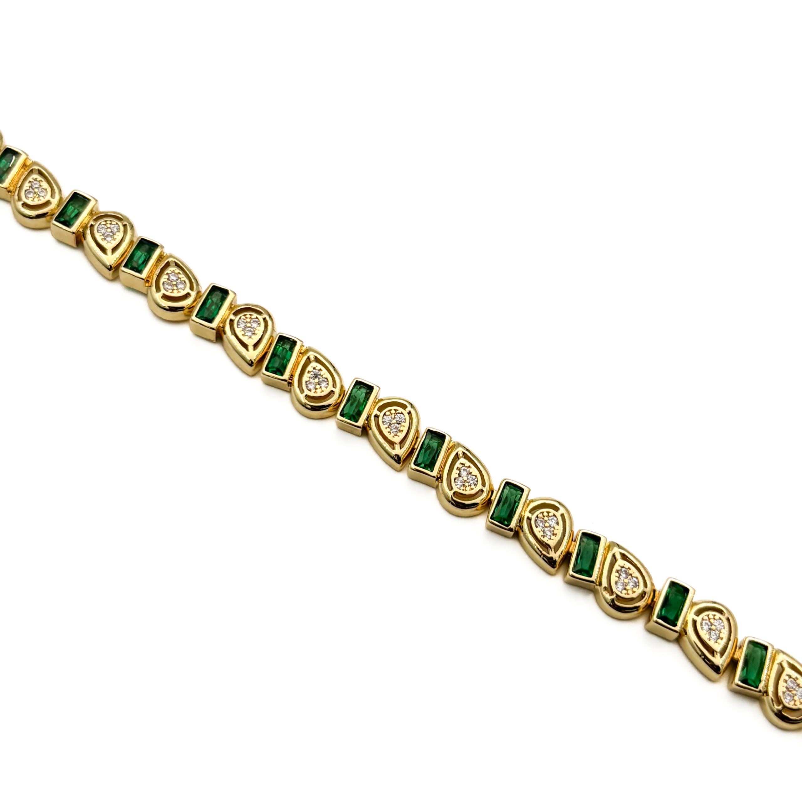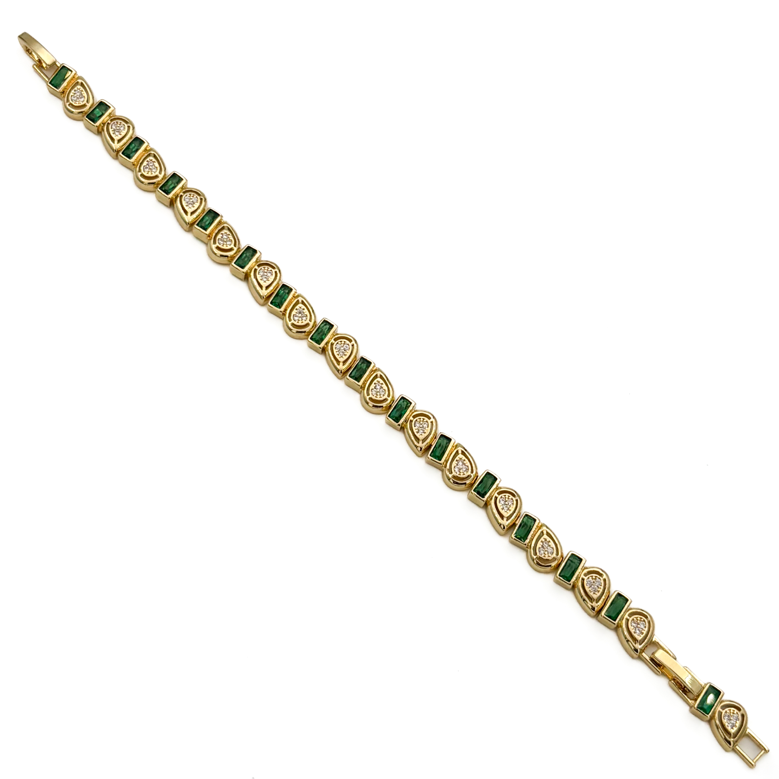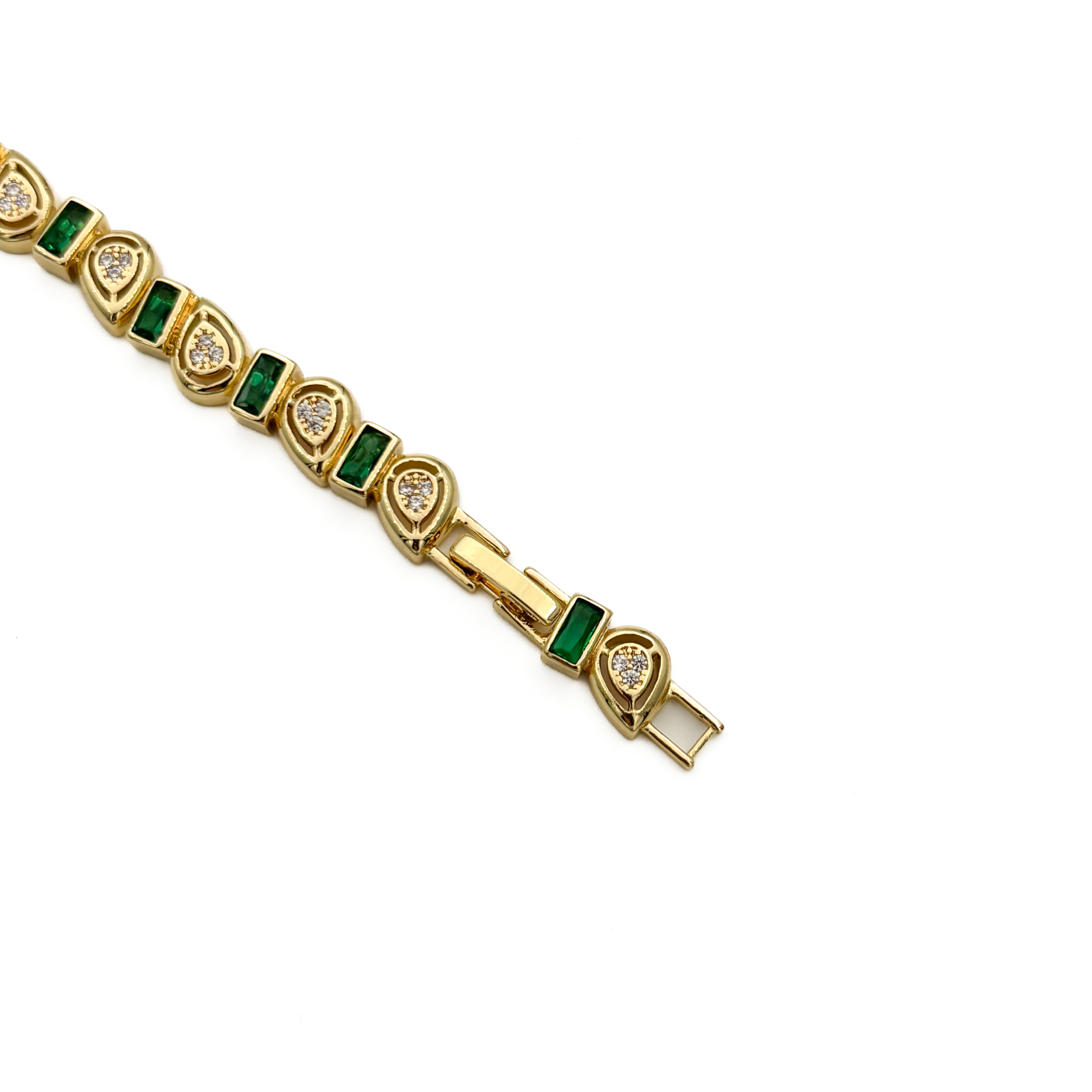 CM Gold Renk Damla Desenli ve Yeşil Taş Detaylı Bileklik
