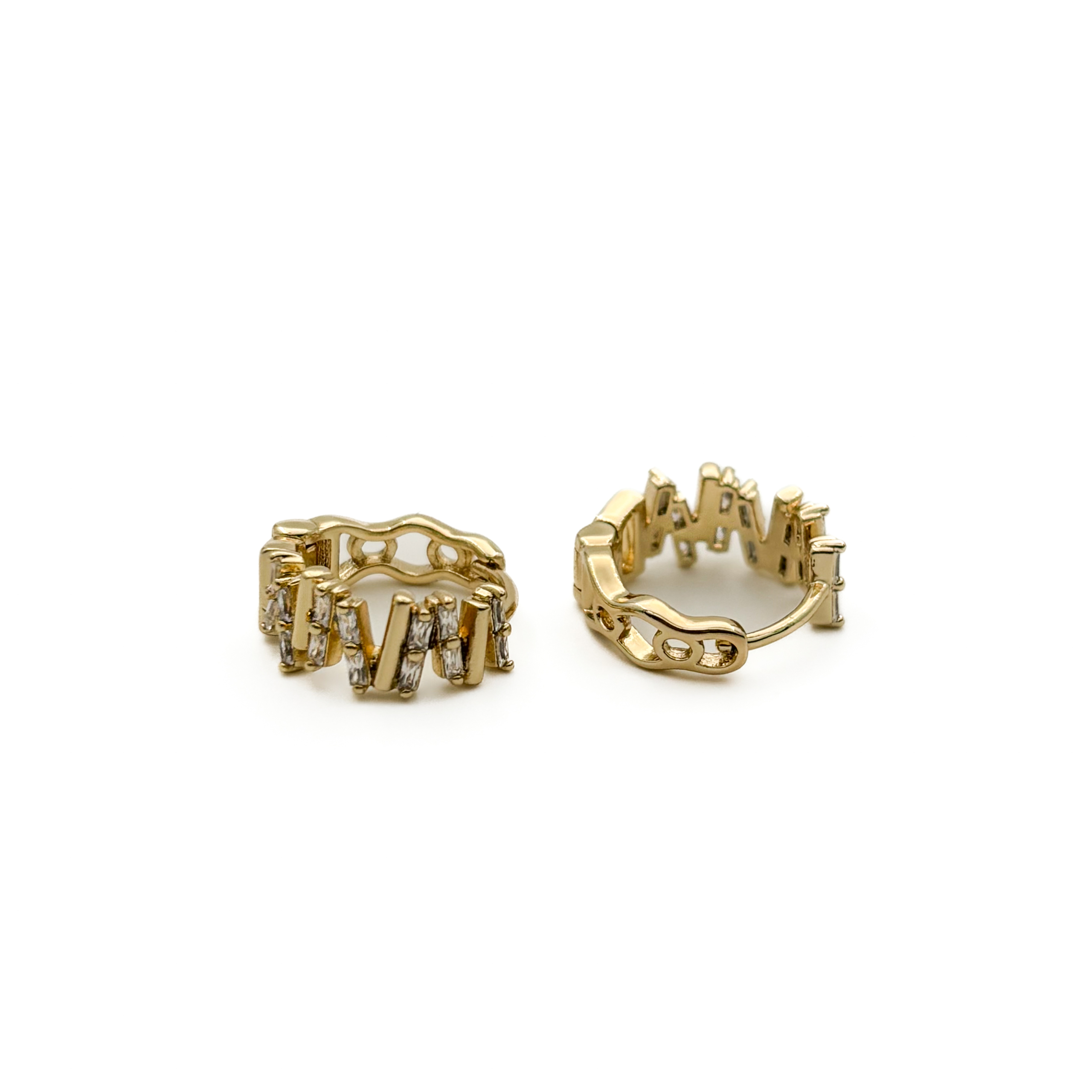 Xuping Gold Renk Baget Taşlı Zikzak Küpe